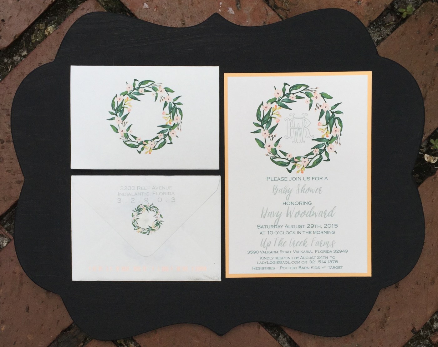 A beautiful floral design that is sweet and sophisticated. The  wreath  creates a beautiful focal point, with the details of a party that your guests will always remember below.