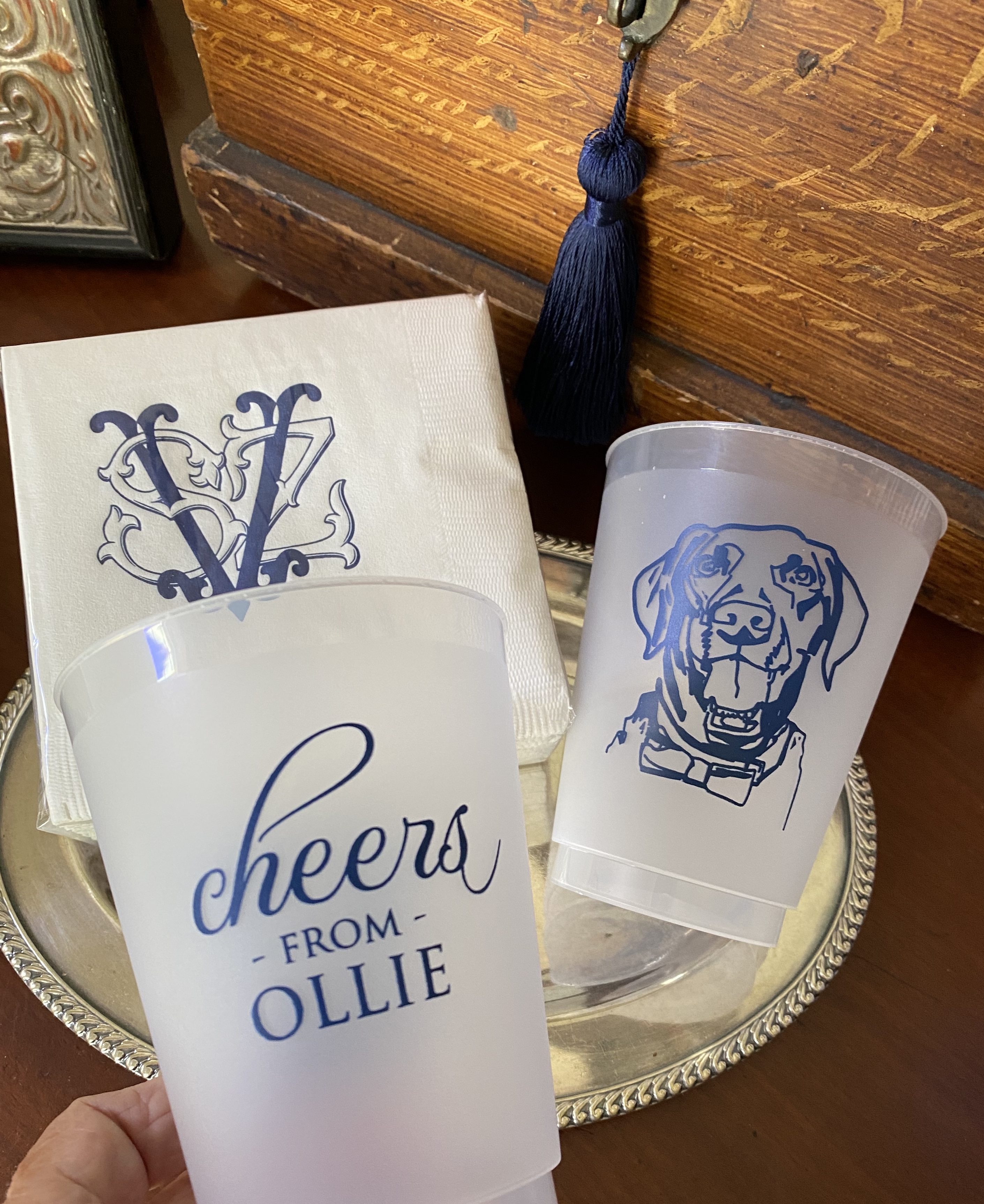 Cheers from Ollie 16 oz frosted cups | Monogramed Cocktail Napkin