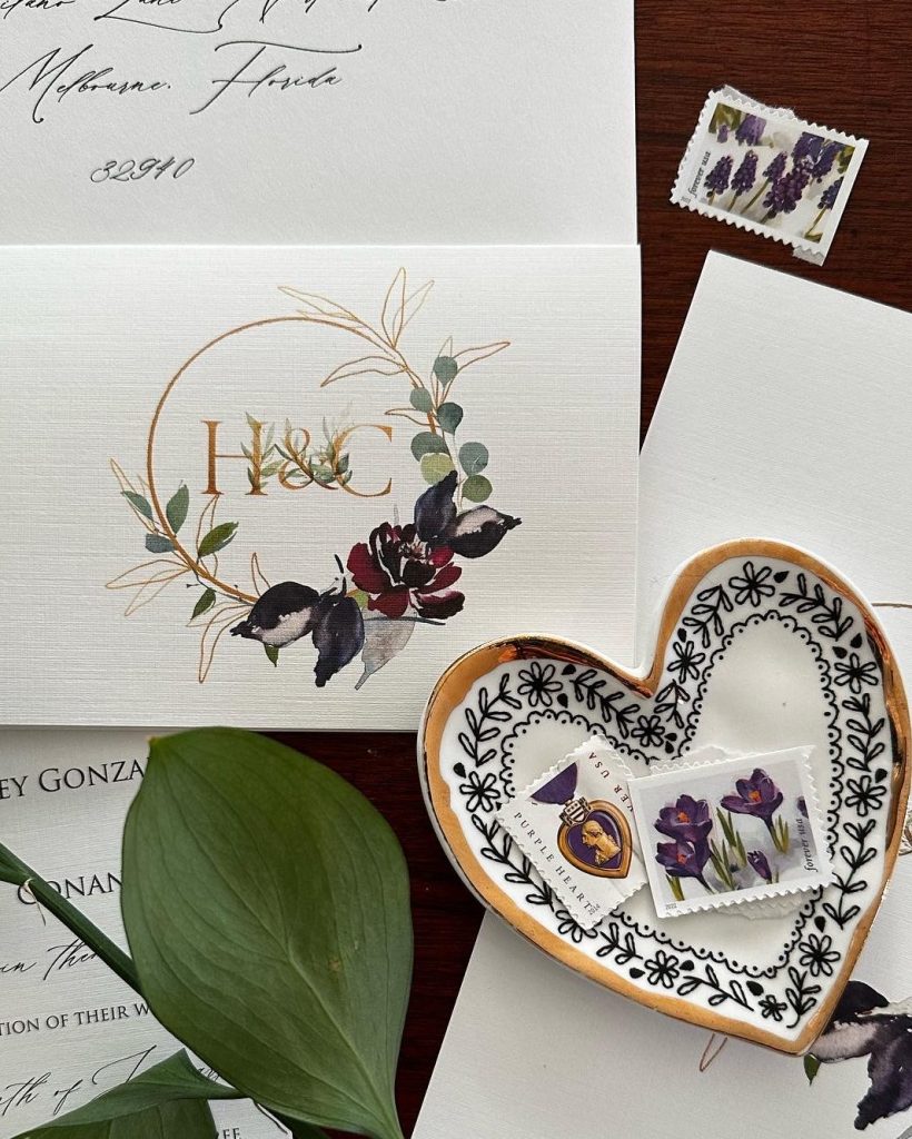 Shades of purple Eggplant, Cabernet, Lavender and Gold | Monogramed Thank You Notes